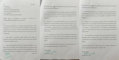 She further wrote that it was baffling to note as to how, why, and under what circumstances agency made such allegation, when she was not even summoned or asked any questions whatsoever.