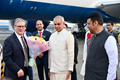 Prime Minister Starmer was welcomed by Maharashtra and Gujarat Governor Acharya Devvrat and Maharashtra Chief Minister Devendra Fadnavis.