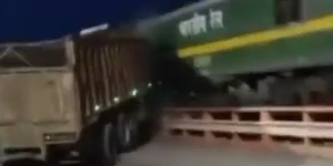 Due to the impact of the collision, the truck was severely damaged and so were the railway tracks.